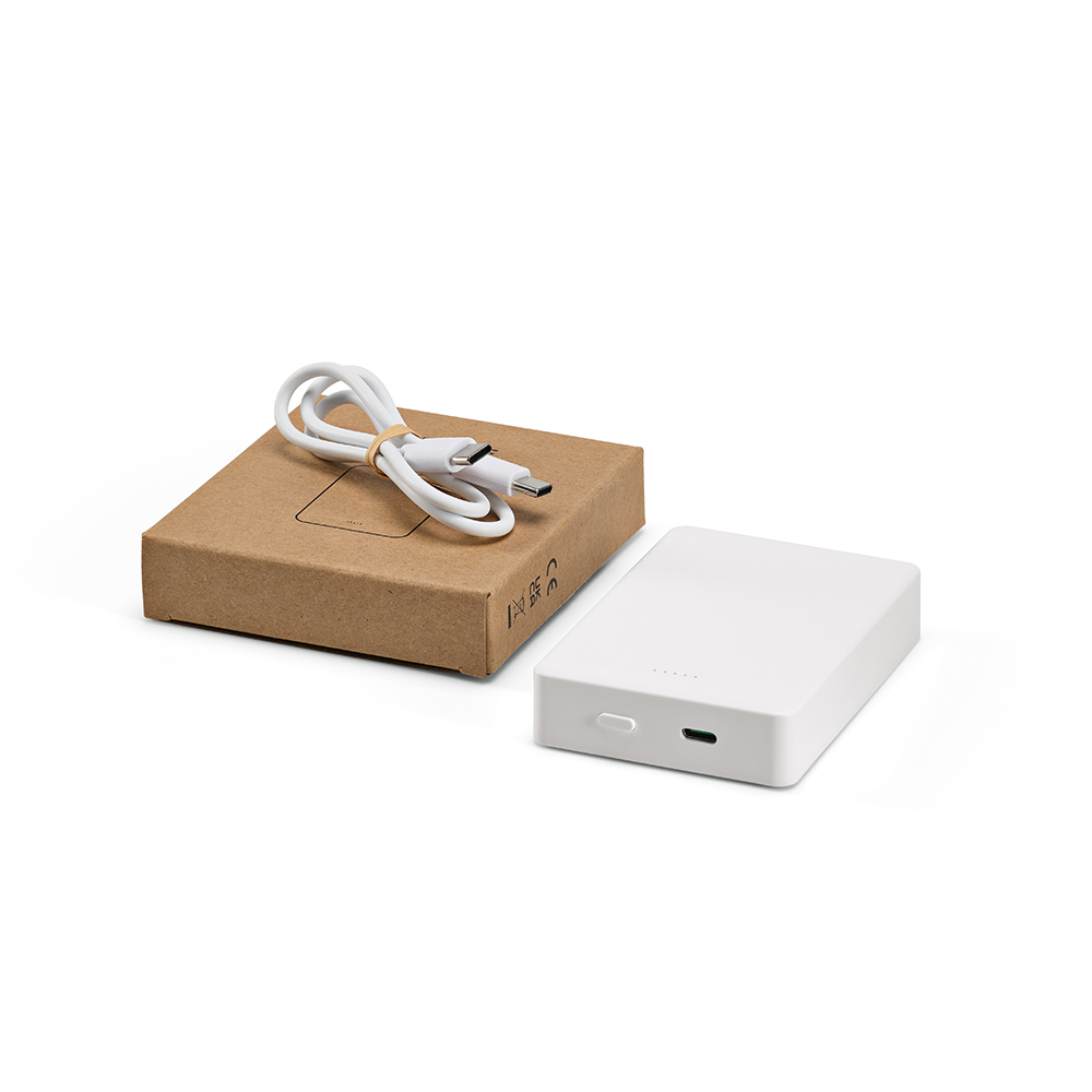 Hooke 10000mAh recycled ABS magnetic powerbank charger. Providing a powerful 22.5W output via cable and 15W output wirelessly, delivering all the power you need on the move. Each unit comes in its own kraft box.