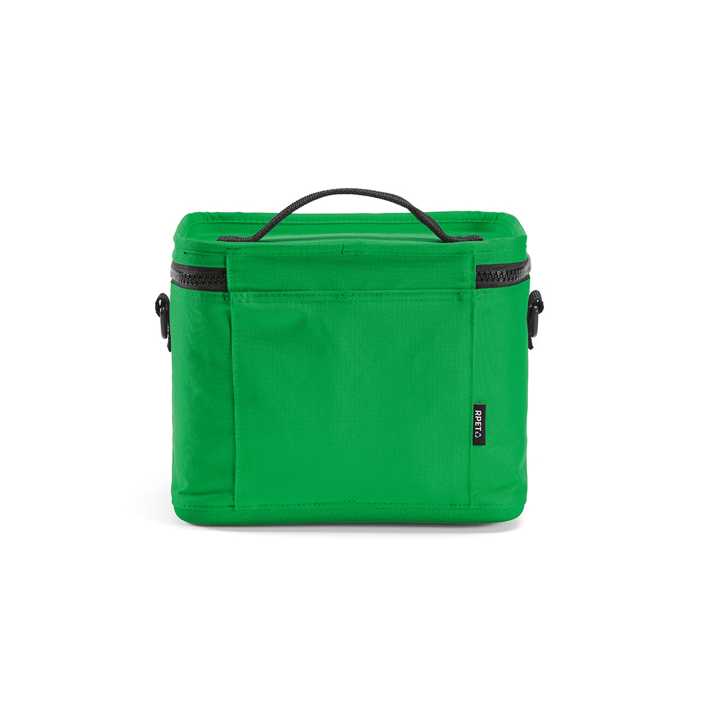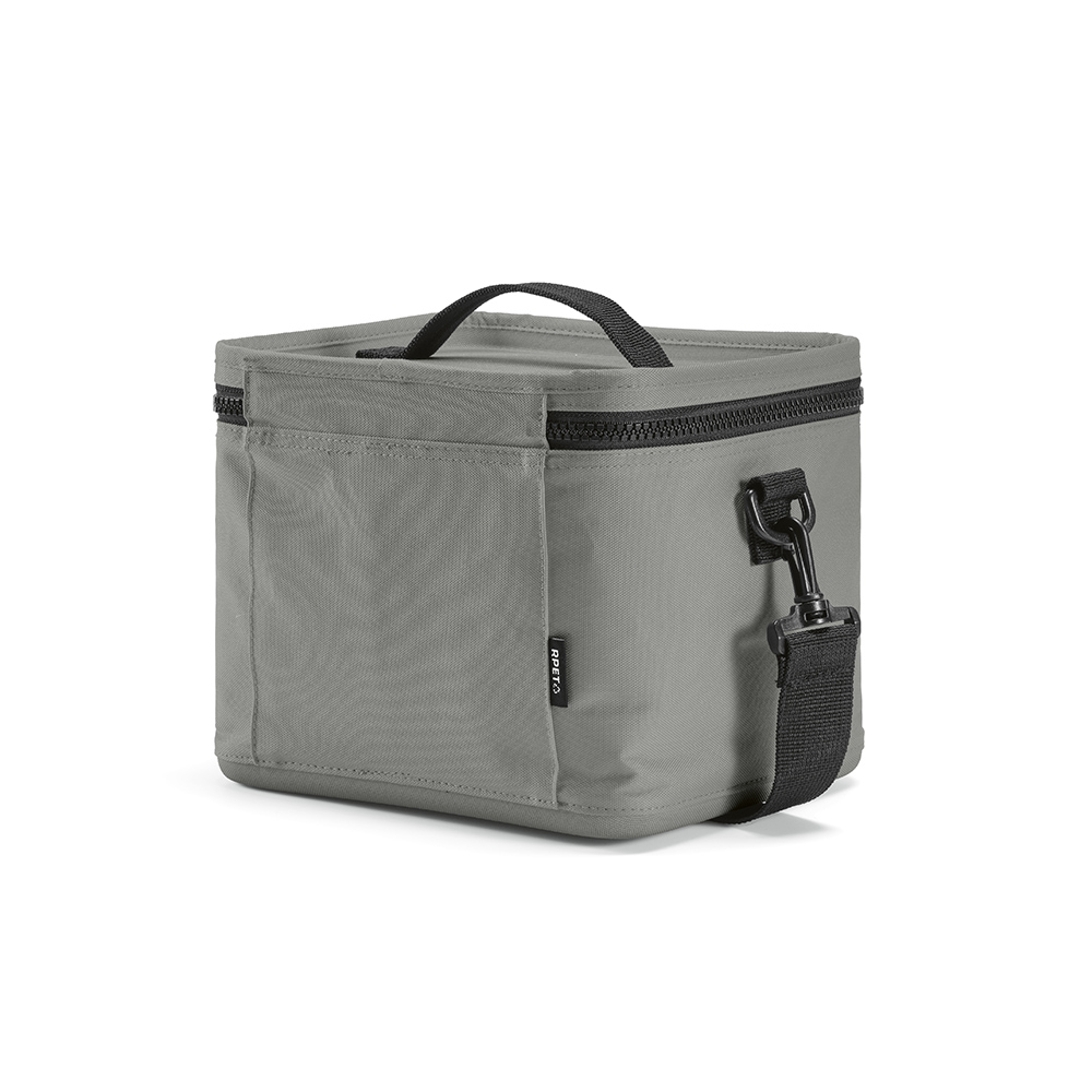 Munich 600D rPET 10L cooler, crafted from recycled materials. The wide opening, double way thermo injection zippers and insulation body ensure temperature retention. Plus, the addition of the shoulder strap improves your comfort. Suitable for 14 cans.