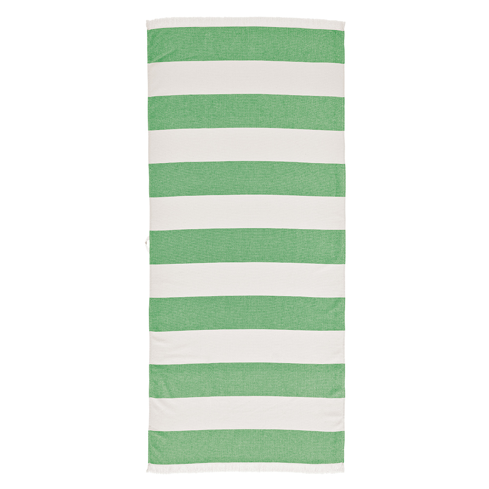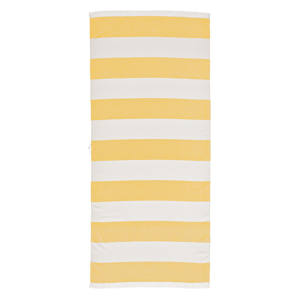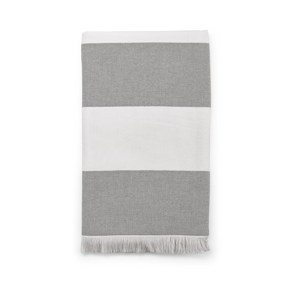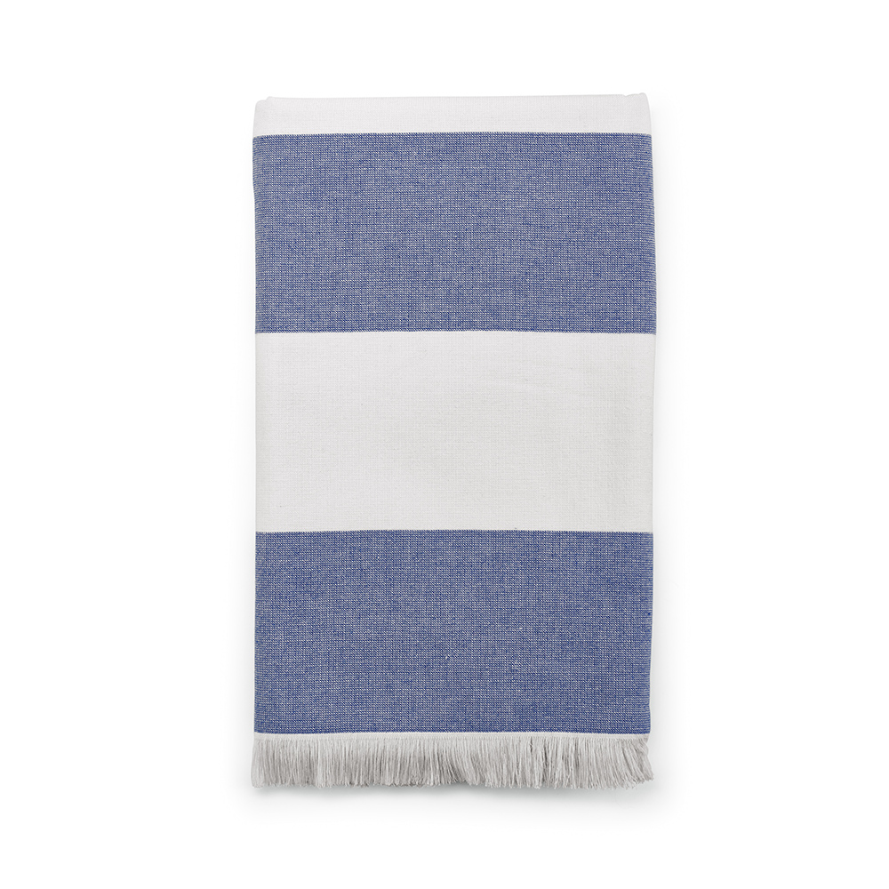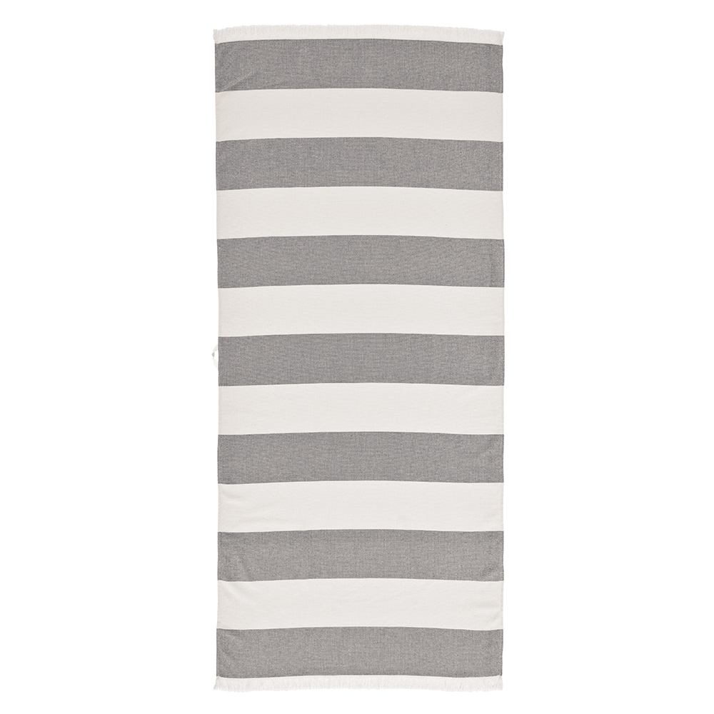 Rodin Beach Towel in recycled cotton (60% recycled cotton and 40% cotton) 350gsm featuring stylish horizontal stripes. Measuring 80x180cm, it comes with a border and fringes. Packaged in a biodegradable polybag, it's a guilt-free pleasure for your bathing routine. Available in 5 colours. Made in Portugal.